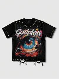 Street Life T-shirt da uomo a maniche corte con scollo rotondo, decorata con stampa di angeli e strass