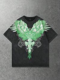 Goth Maglietta oversize da uomo con stampa digitale a croce e ali