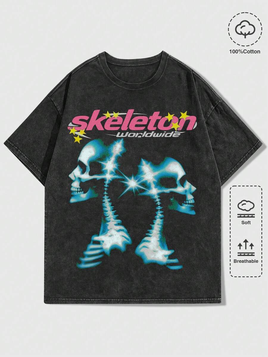 Street Life Maglietta a maniche corte da uomo con grafica vintage della Sposa Cadavere, lavata