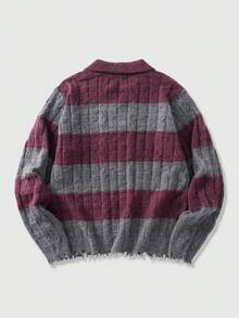 Prep Maglione a collo alto casual da uomo a righe colorate e lavorazione a trecce, adatto per l'autunno/inverno