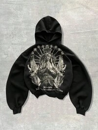 Goth Felpa con cappuccio da uomo per primavera, autunno e inverno, felpa personalizzata con grafica religiosa e stampa effetto vissuto grigio/nero, design dettagliato adatto agli uomini, versatile per occasioni casual e di stile