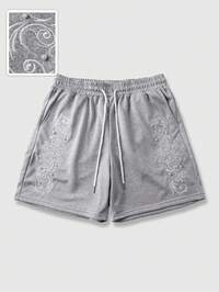 Street Life Pantaloncini estivi casual da uomo alla moda, con ricamo, decorazione con perle finte e vita con coulisse