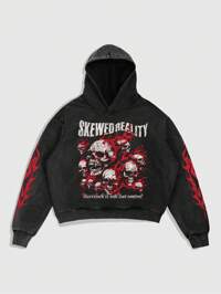 Grunge Punk Felpa Oversize Con Cappuccio e Lacci Uomo, Stampa a Lettera Casual, Autunno Inverno