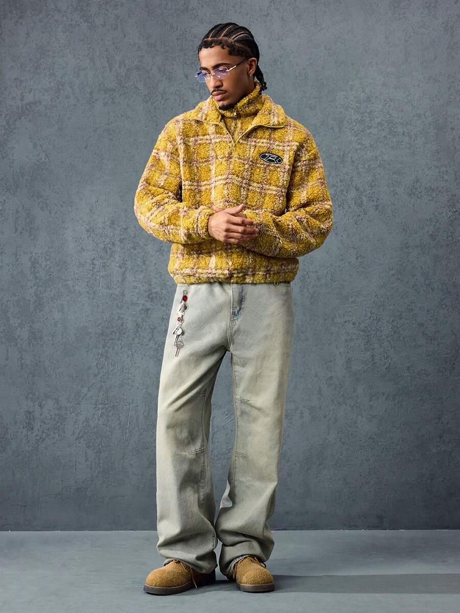 Street Life Felpa girocollo casual a quadri da uomo, autunno/inverno