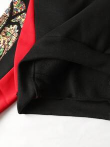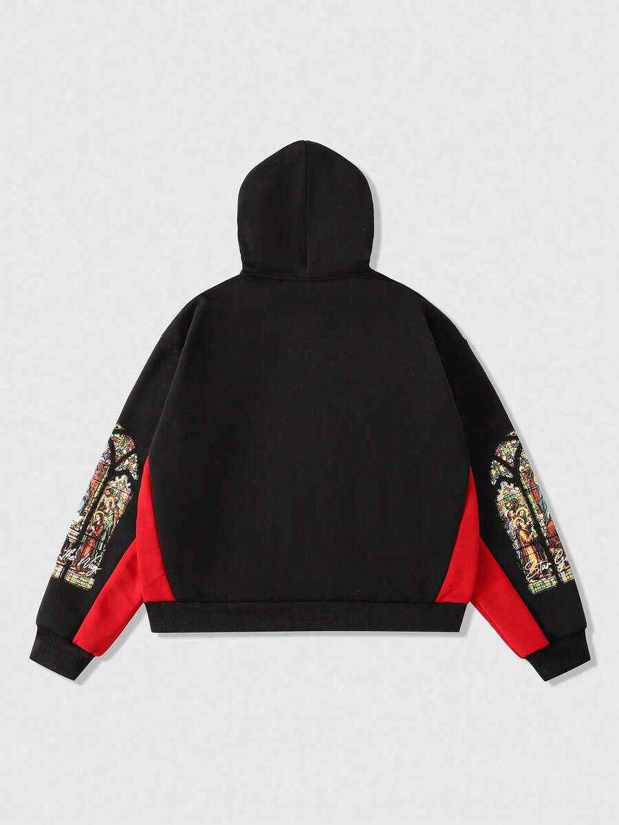 Street Life Felpa con cappuccio casual da uomo con stampa di personaggi religiosi, patchwork e colori a contrasto, adatta per l'autunno