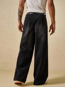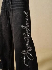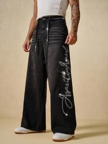 Street Life Jeans casual da uomo in denim lavato con ricamo e decorazioni in strass