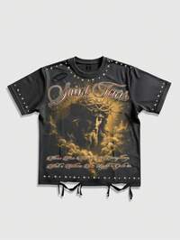 Maglietta a maniche corte da uomo con decorazioni di strass a forma di croce e lettera