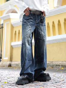 Jeans casual da uomo lavati, vintage, a gamba ampia