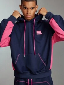 Street Life Set casual da uomo con felpa con cappuccio e pantaloni in colori a contrasto, abbigliamento autunnale