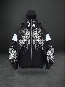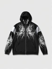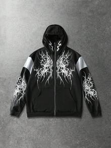 Street Life Felpa con cappuccio casual da uomo con zip, a maniche lunghe, con colori a contrasto