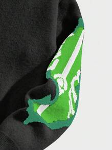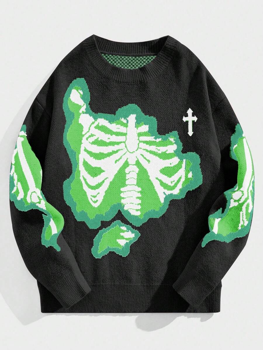 Goth Maglione casual a girocollo con maniche a goccia, motivo teschio jacquard, stile grunge, autunno inverno, per uomo