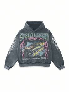 Street Life Felpa corta con cappuccio consumata da uomo, stile vintage da strada