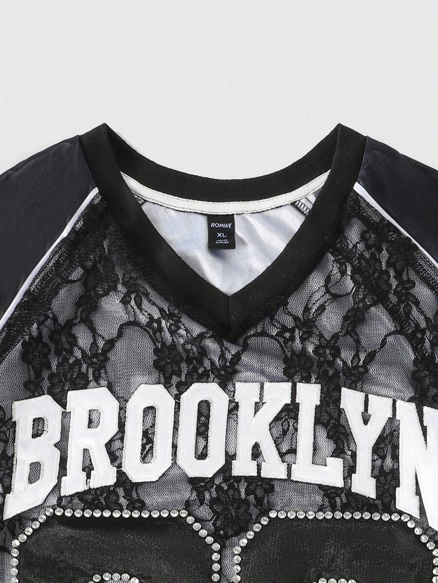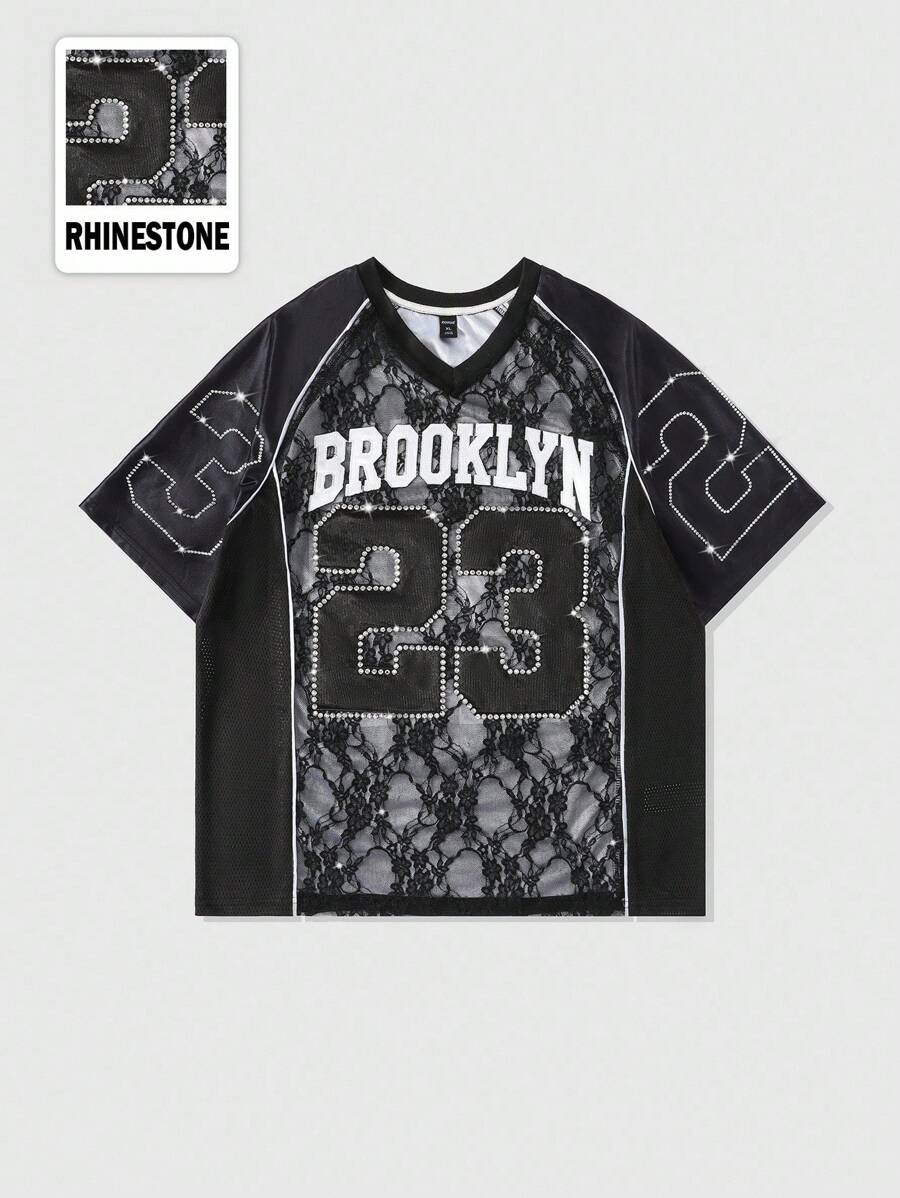 Prep Maglietta a maniche corte da uomo con fiori traforati, patchwork e decorazioni in strass, stile ampio e corto
