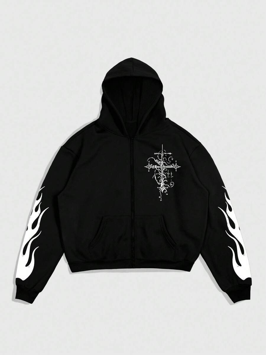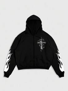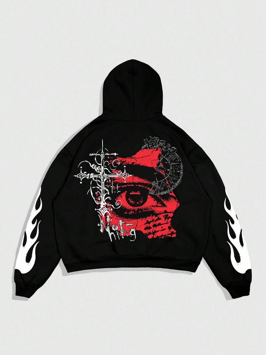 Goth Felpa con cappuccio da uomo con colori a contrasto, casual e ampia, con motivo creativo