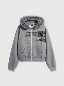 Street Life Felpa con cappuccio da uomo, con colletto in pelliccia, maniche lunghe, spalle scivolate, cerniera, casual e versatile, autunnale