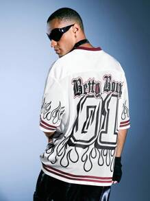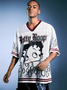 Betty Boop | ROMWE maglietta a maniche corte da uomo con scollo a V, con grafica di lettere e numeri