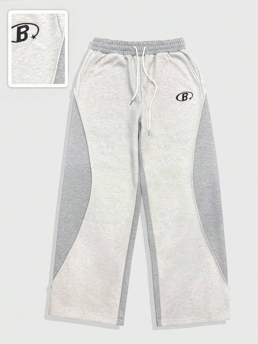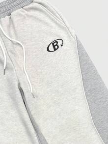 Street Life Pantaloni larghi da uomo con stampa di lettere, vita con coulisse e tasche, colore a contrasto, stile casual, adatti per l'autunno