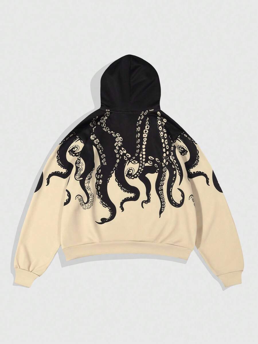Street Life Felpa con cappuccio a maniche lunghe da uomo con stampa di tentacoli di polpo e colore a contrasto