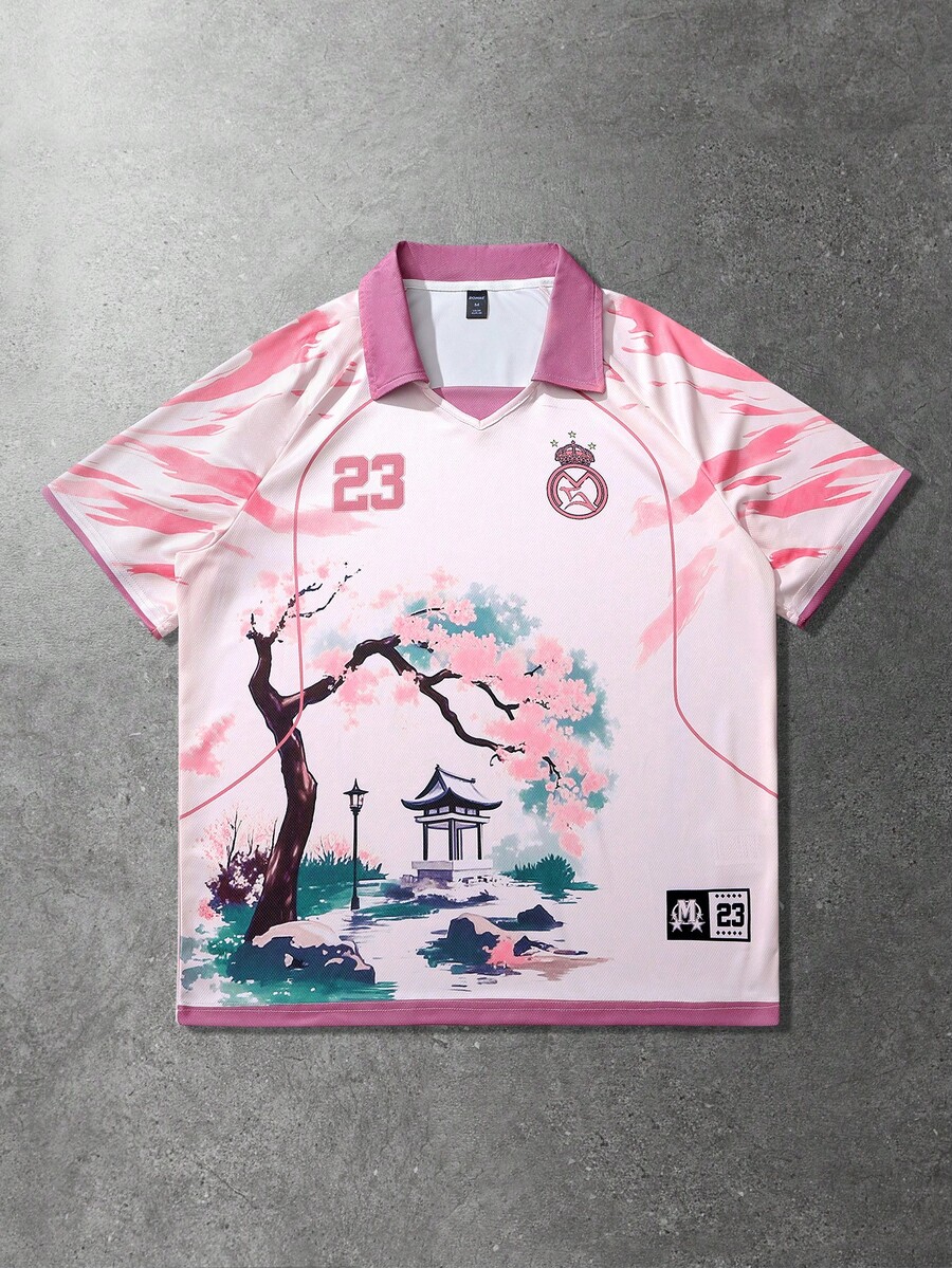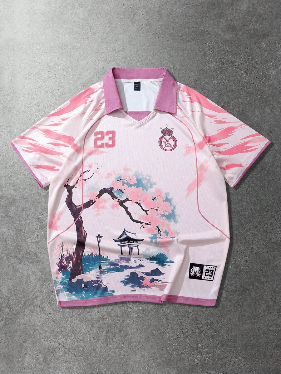 Anime Polo da uomo, polo a maniche corte casual con stampa grafica di Sakura e testo in inglese