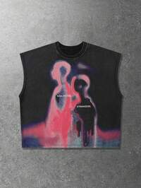 Street Life Maglietta smanicata da uomo oversize con stampa di slogan e stelle