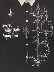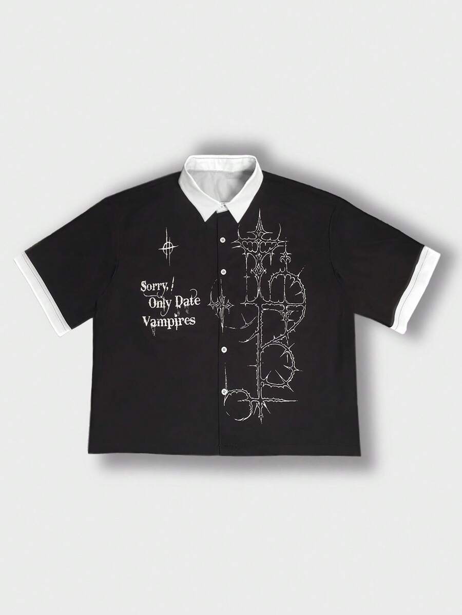 Goth Camicia casual da uomo a maniche corte con stampa di slogan e colore a contrasto