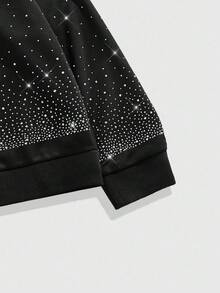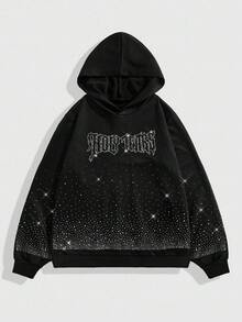 Street Life Felpa con cappuccio nera scintillante con diamanti da uomo, stile oversize corto, autunnale