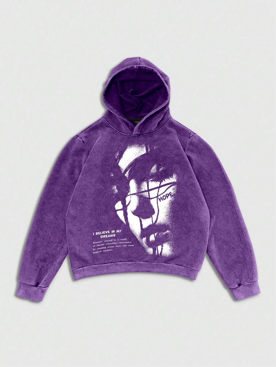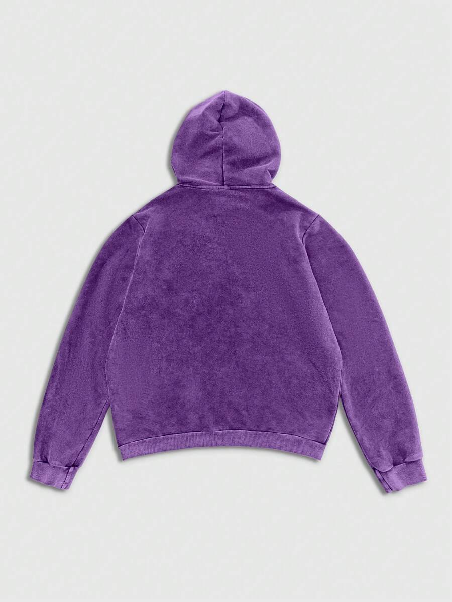 Street Life Felpa con cappuccio vintage da uomo, lavata, consumata, con grafica e slogan in stile acido-lavato