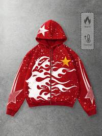 Street Life Uomo Felpa con cappuccio con chiusura lampo frontale, vestibilità morbida, stampa a stelle, adatta per autunno/inverno