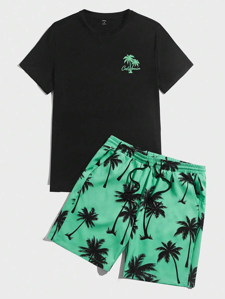 Uomo stampa albero di cocco Maglietta & con coulisse a vita Shorts