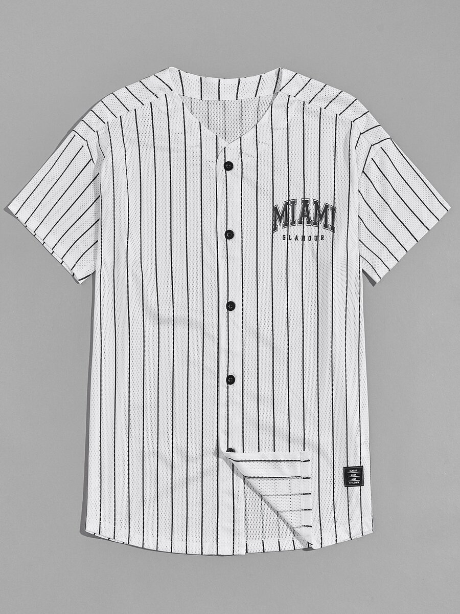 Camicie da uomo Creste Bottone frontale Lettere A strisce College