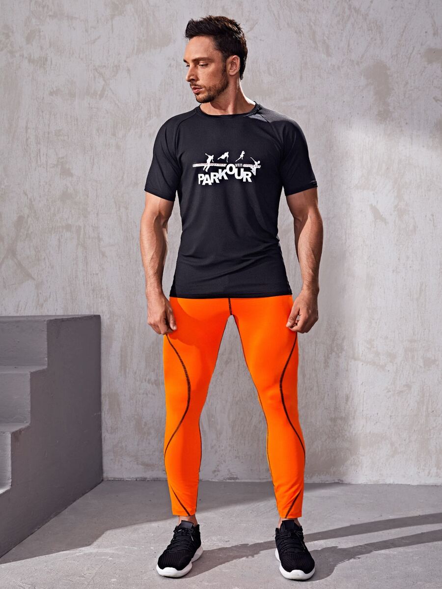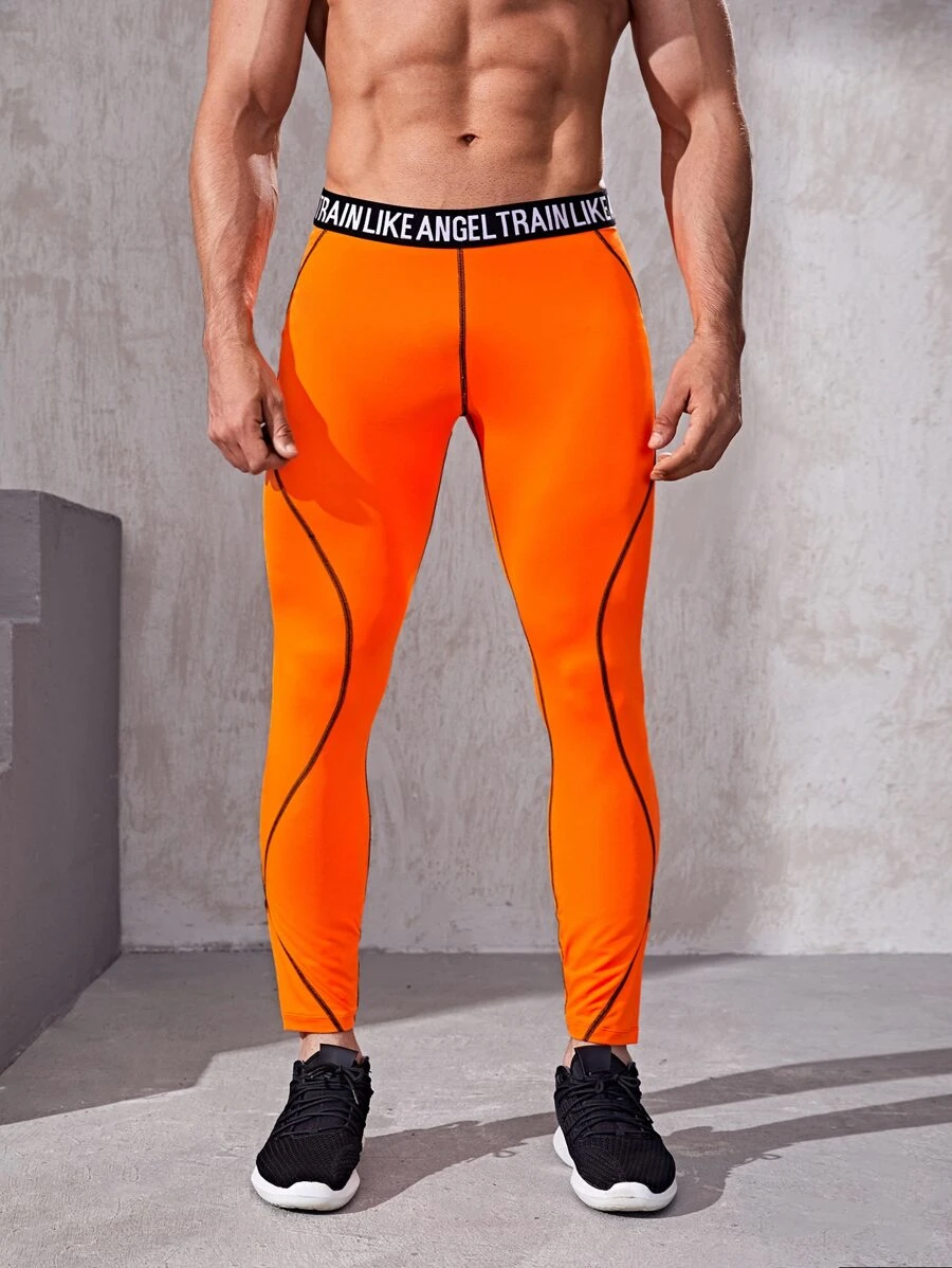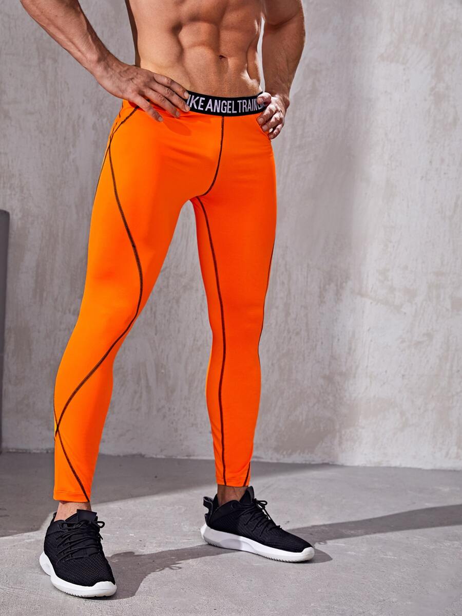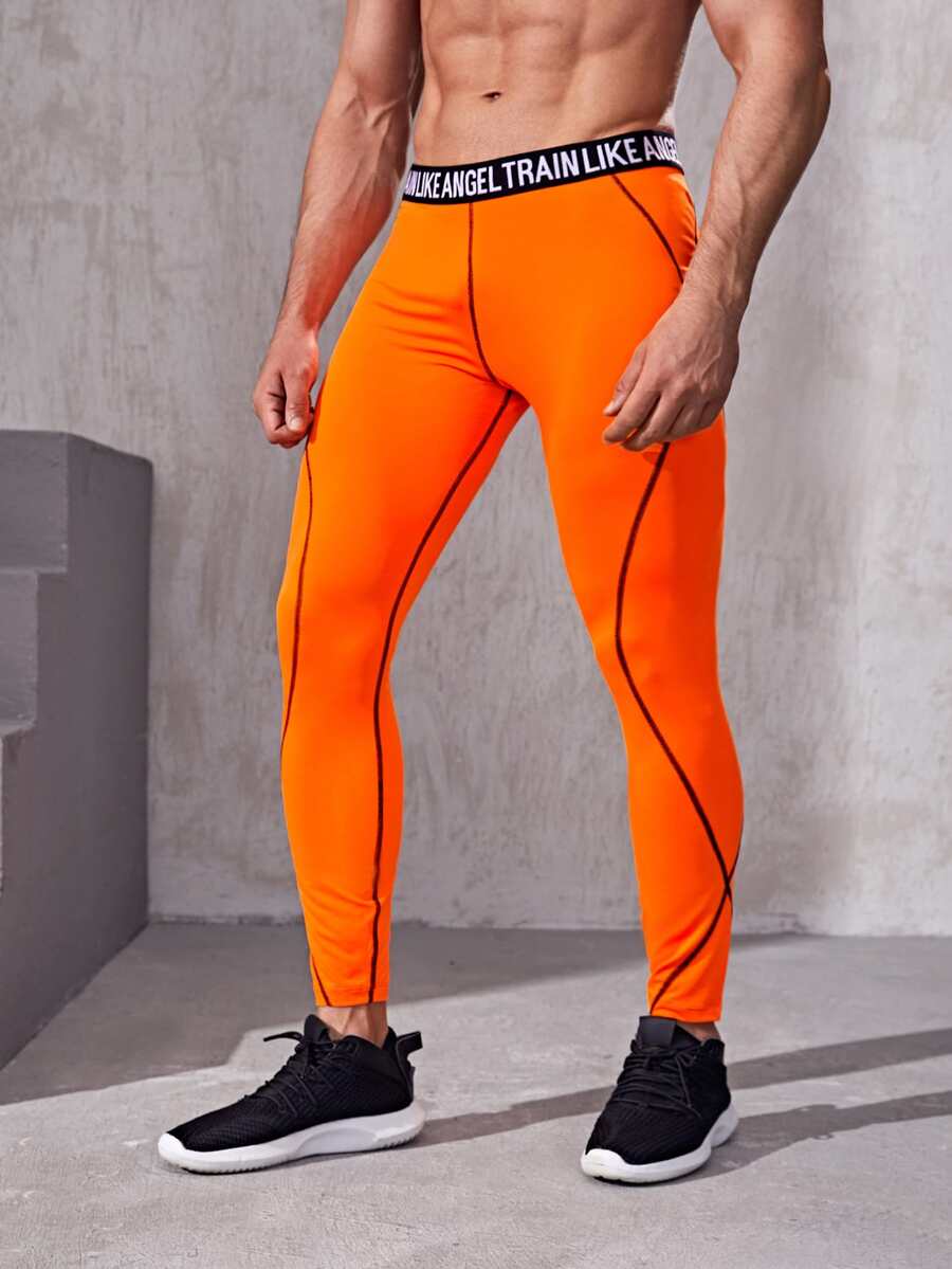 Leggings da yoga con lettera arancione al neon da uomo