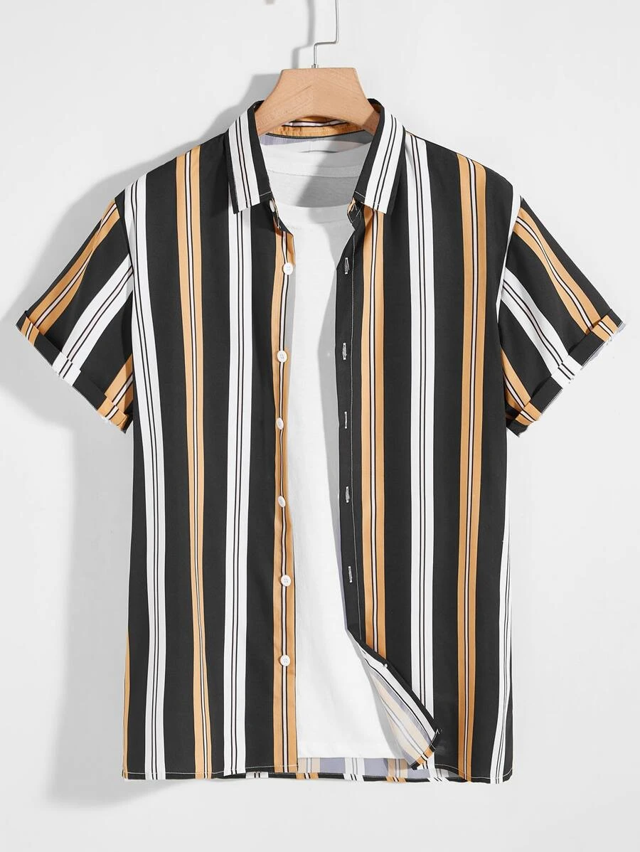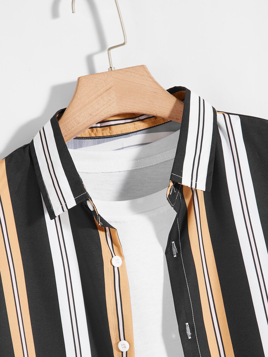 Camicia a righe verticali da uomo con bottone up