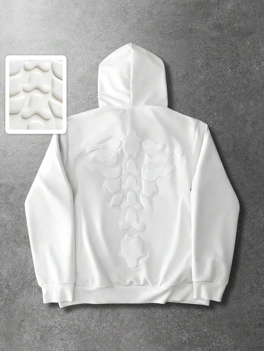 Felpa con cappuccio casual da uomo a maniche lunghe con motivo a ossa 3D