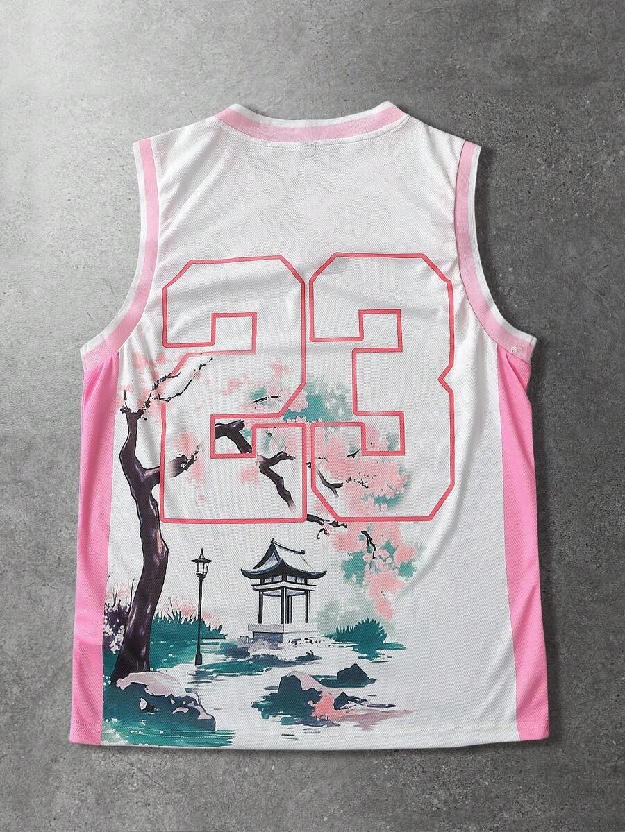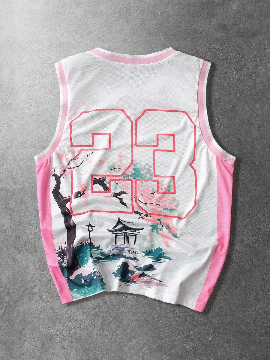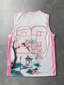 Canotta casual da uomo con stampa di fiori di ciliegio, stile da strada, primavera/estate