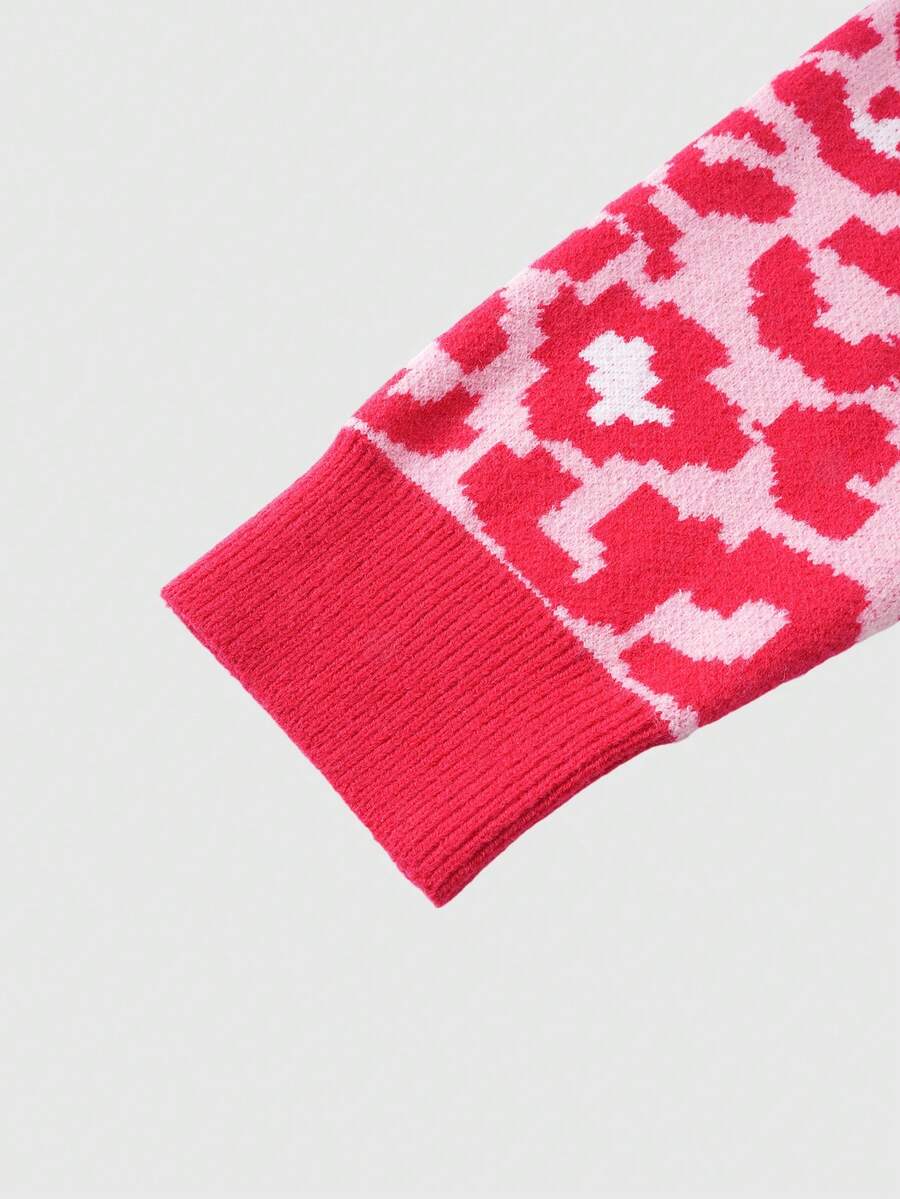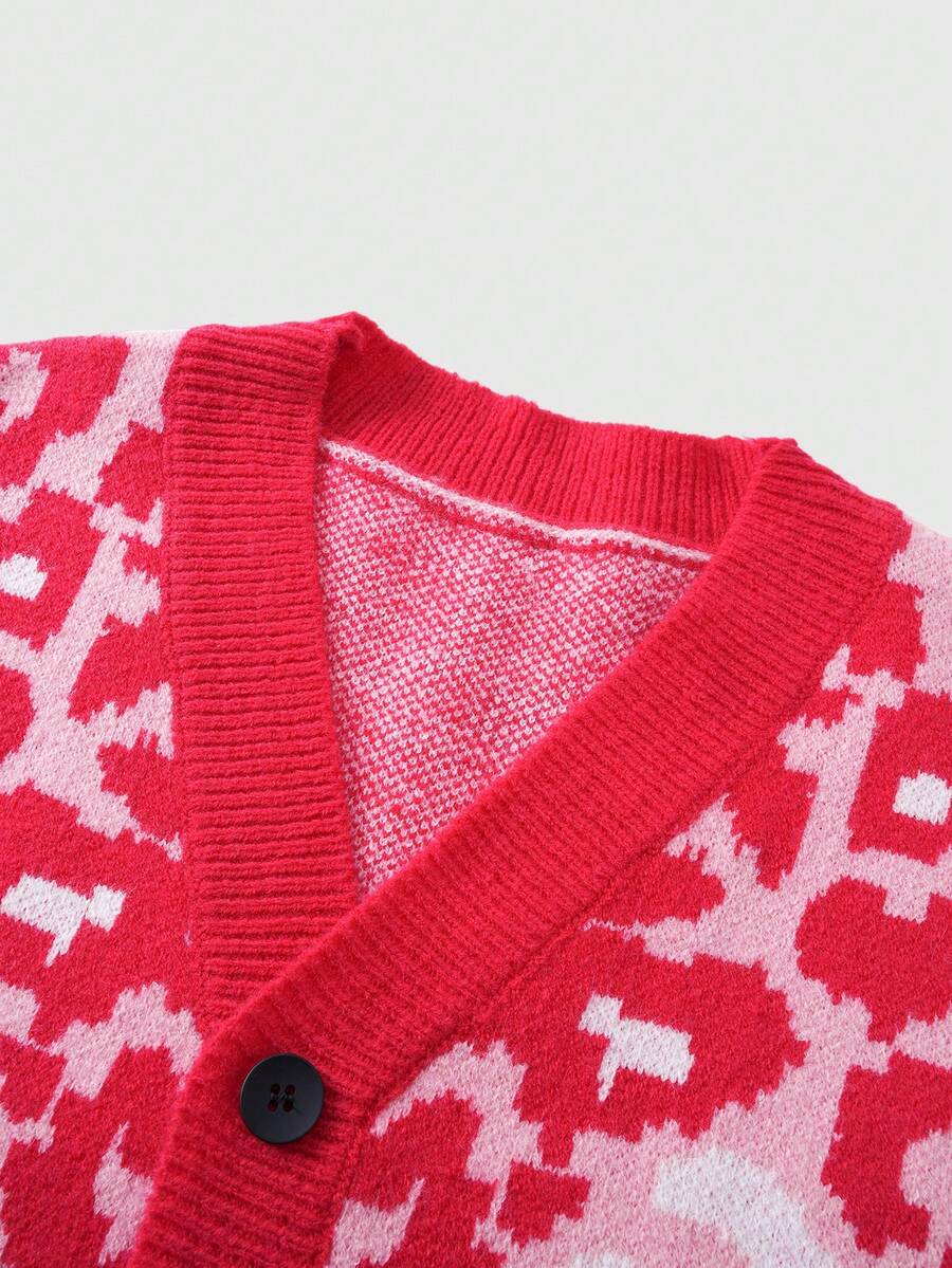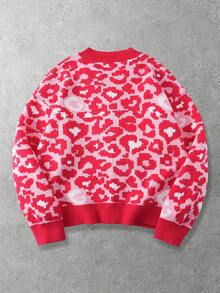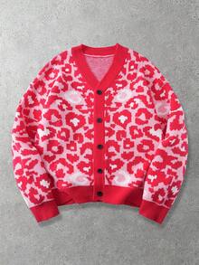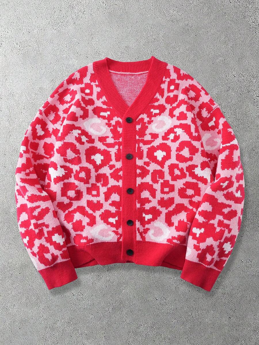 Maglione casual da uomo con stampa leopardata, bottoni frontali e spalle scese, adatto per l'autunno/inverno