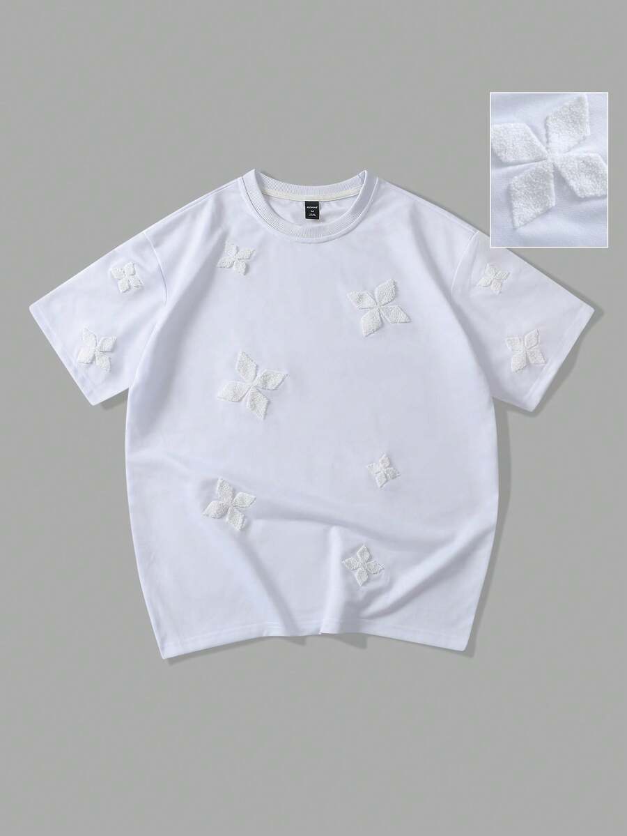 maglietta bianca casual da uomo con grafica, vestibilità ampia e spalle cadenti, stile di moda da strada per uso quotidiano e pendolarismo, adatta per l'estate