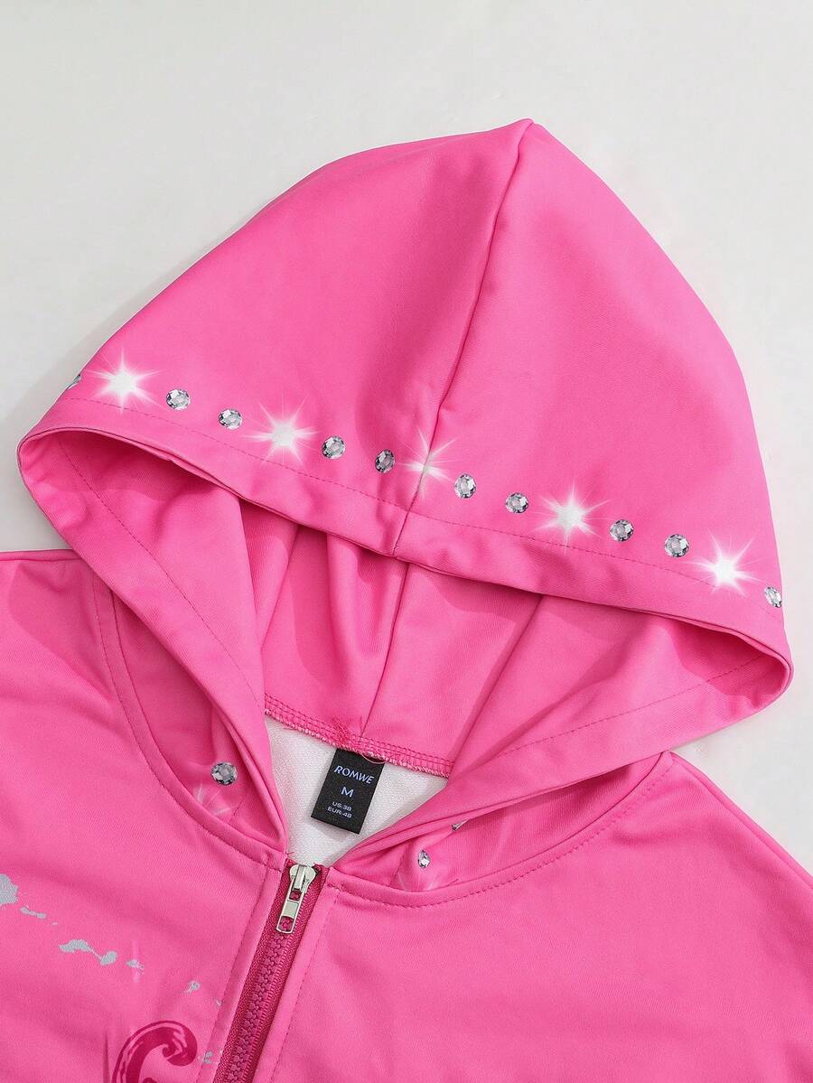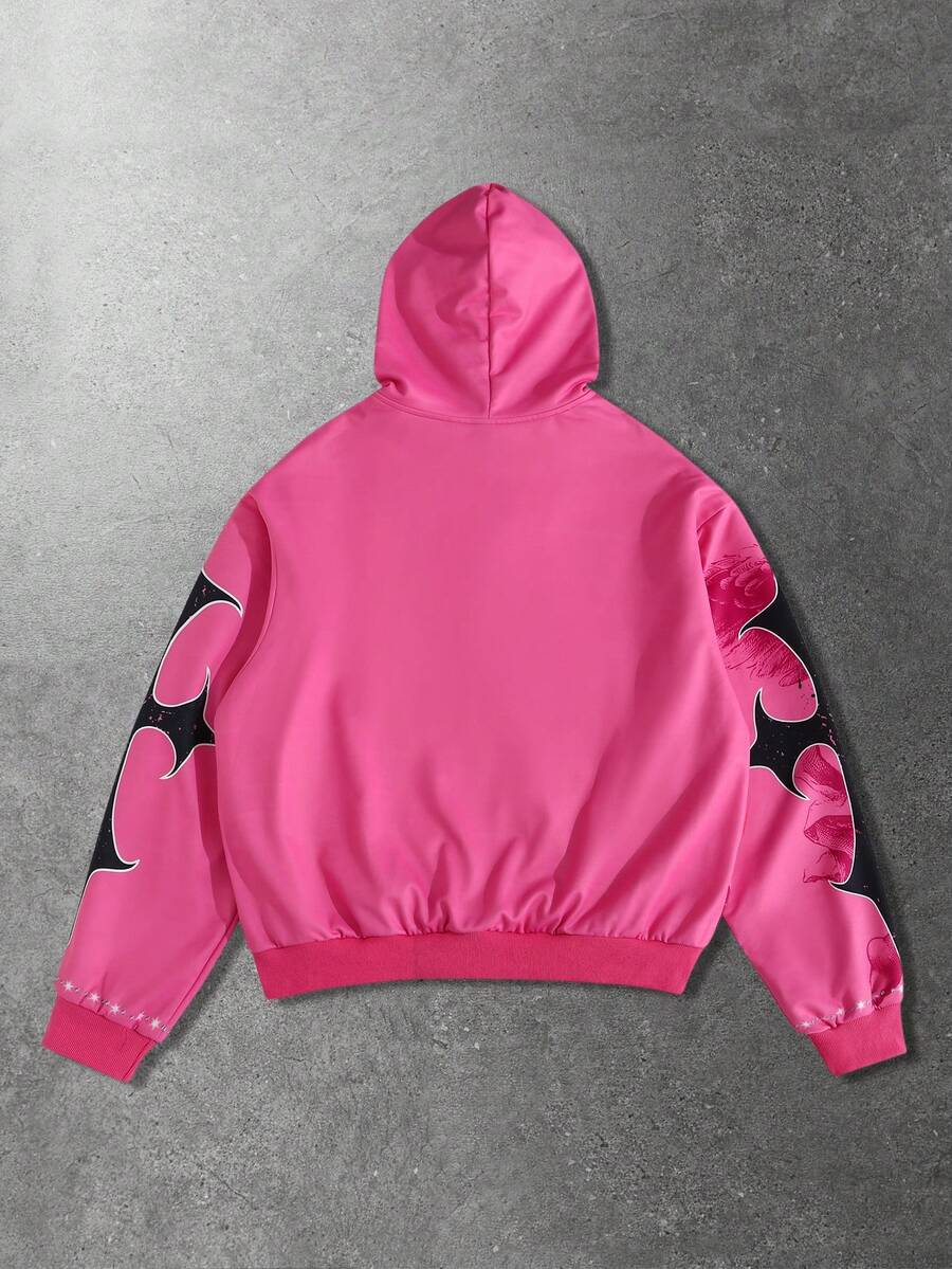 Felpa con cappuccio e chiusura lampo casual da uomo con stampa di lettere e angeli, autunnale