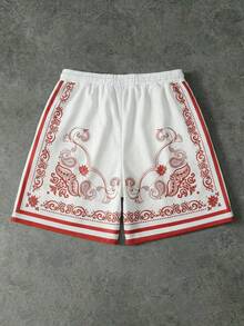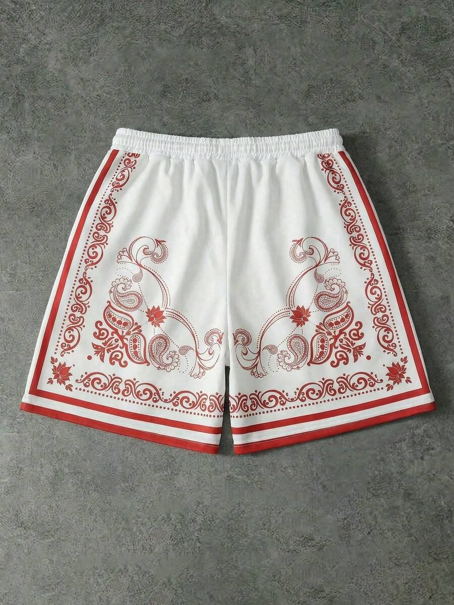 Pantaloncini casual da uomo con vita con coulisse e stampa di anacardi