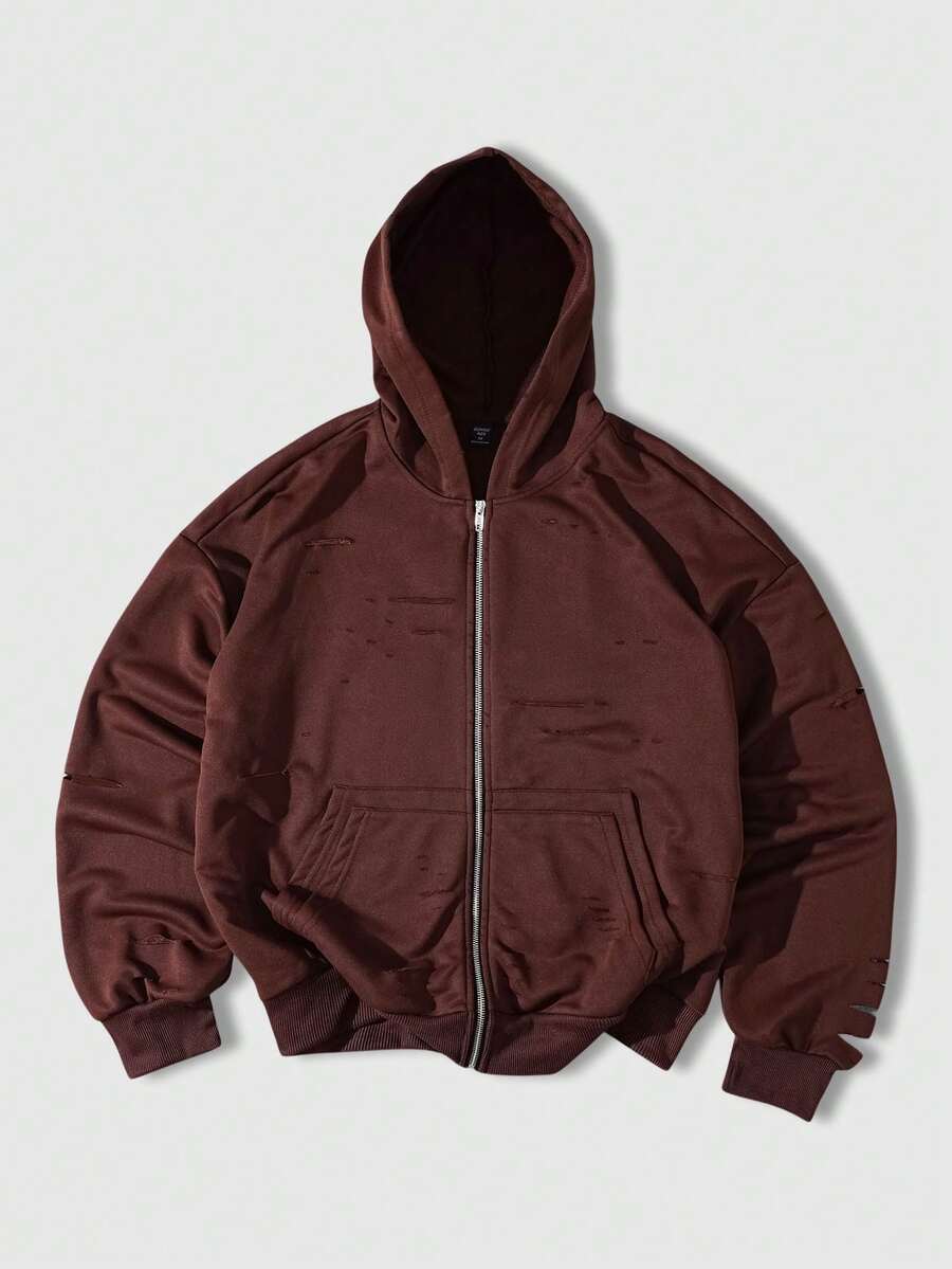 Felpa con cappuccio casual e ampia con chiusura lampo e maniche lunghe da uomo