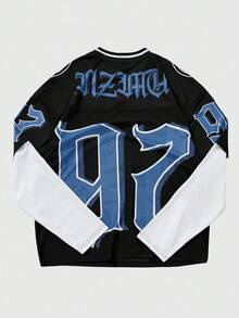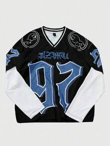 Prep Maglietta casual da uomo con scollo a V, stampa grafica 97 in rete, adatta per l'autunno