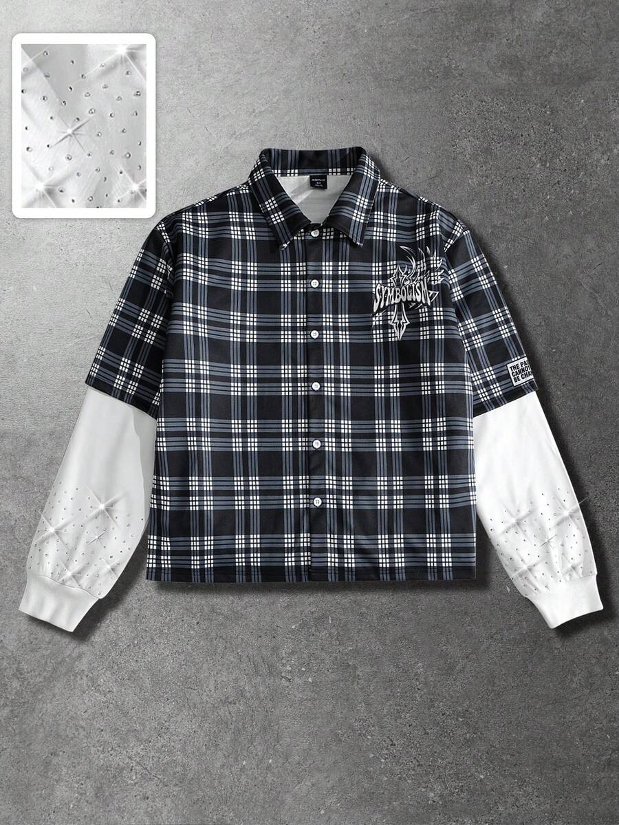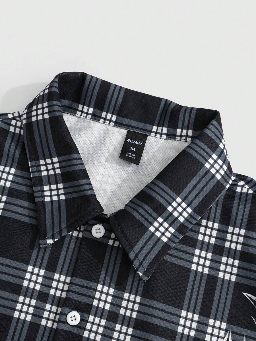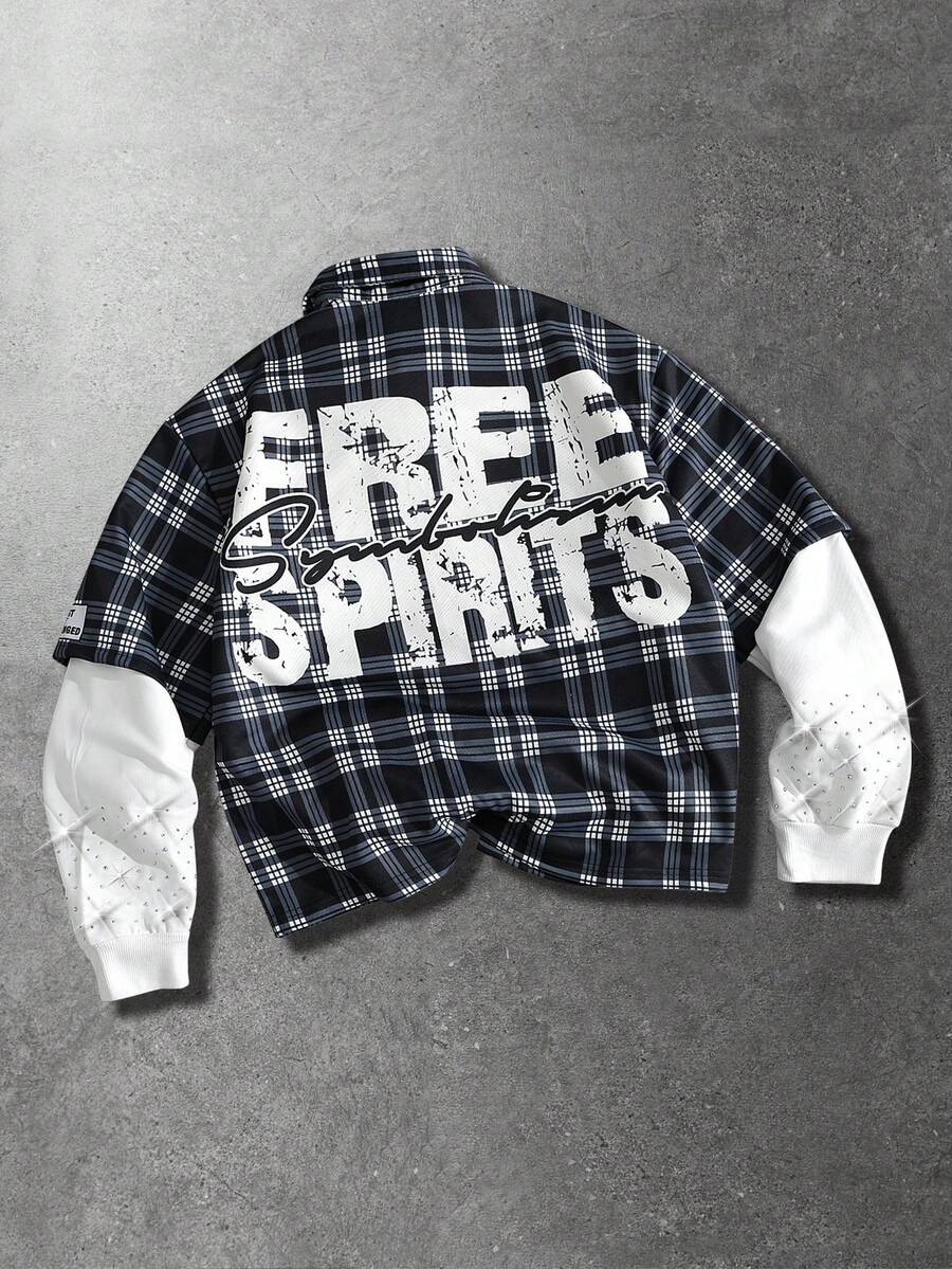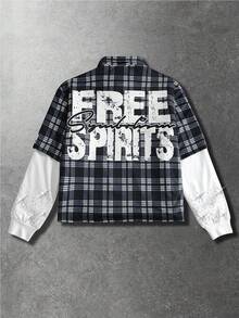 Camicia casual a maniche lunghe da uomo con stampa in inglese americano e motivo a quadri, adatta per primavera e autunno