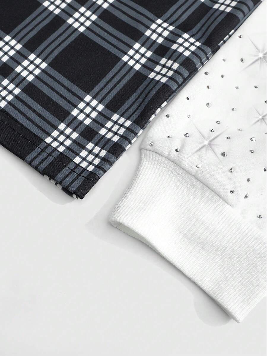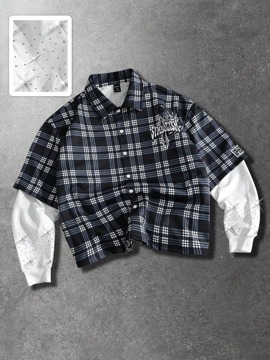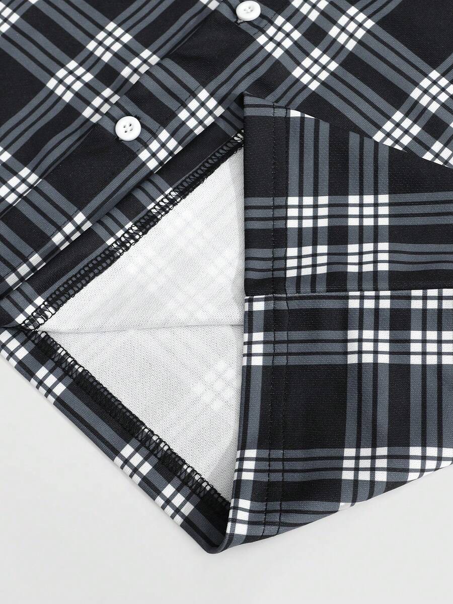 Camicia casual a maniche lunghe da uomo con stampa in inglese americano e motivo a quadri, adatta per primavera e autunno