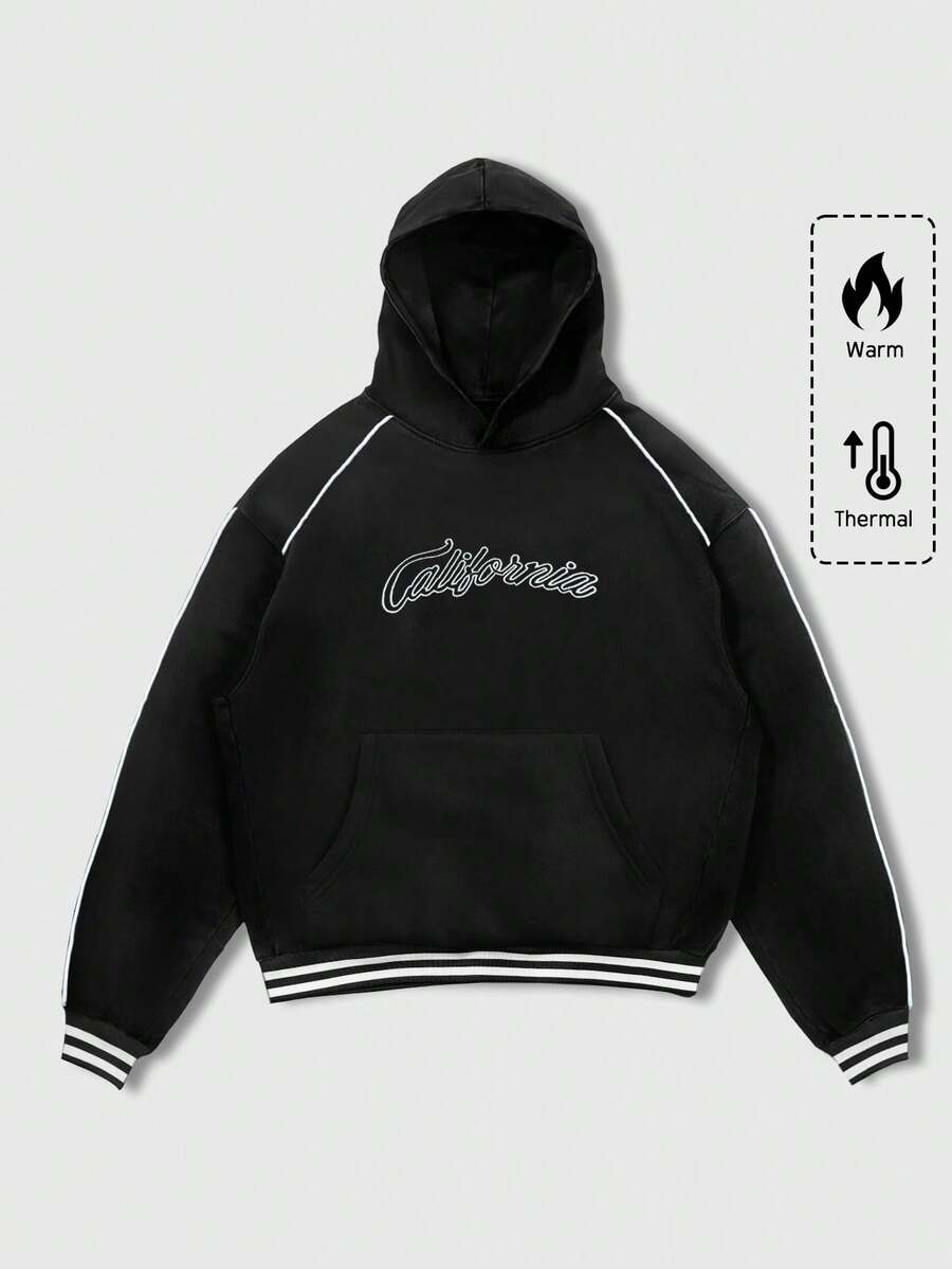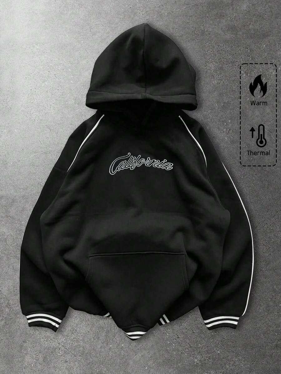 Felpa con cappuccio casual e calda da uomo con grafica a lettera, autunnale