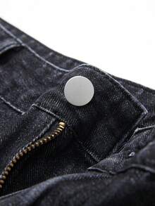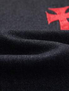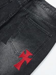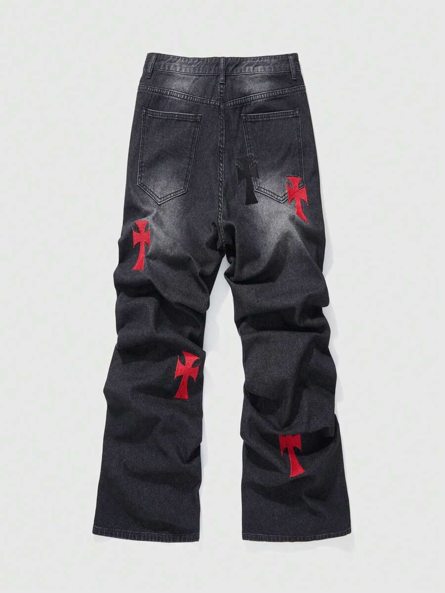 Jeans casual da uomo lavati, con ricamo a croce, effetto consumato e strass