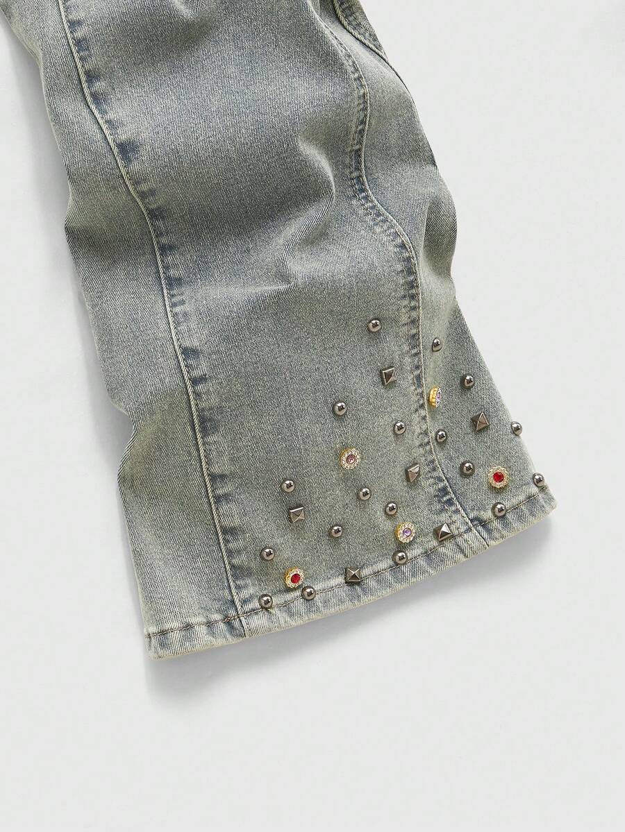 Jeans casual da uomo in denim lavato con decorazione di strass