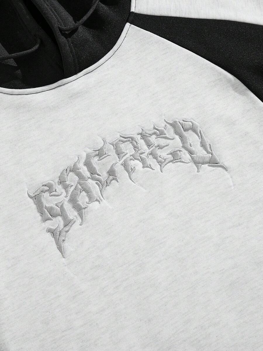 Felpa con cappuccio da uomo con stampa colorblock a lettere, patchwork a blocchi di colore, maniche lunghe