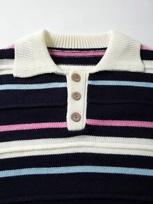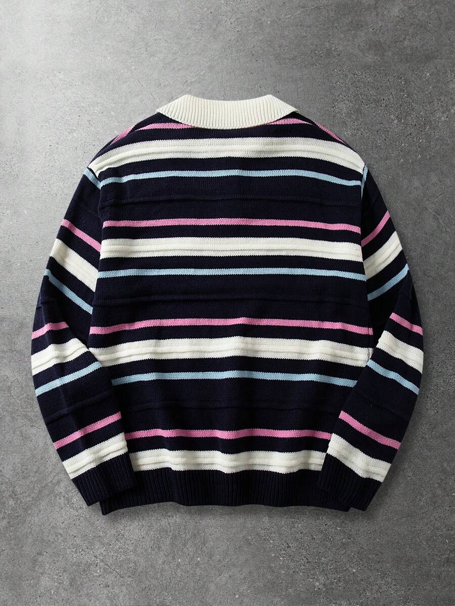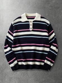 Maglione a maniche lunghe da uomo con collo a polo e righe a contrasto