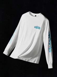 Maglietta a maniche lunghe da uomo in cotone con grafica di fuoco e lettera, regalo per il fidanzato, adatta per uscire, estate, streetwear casual
