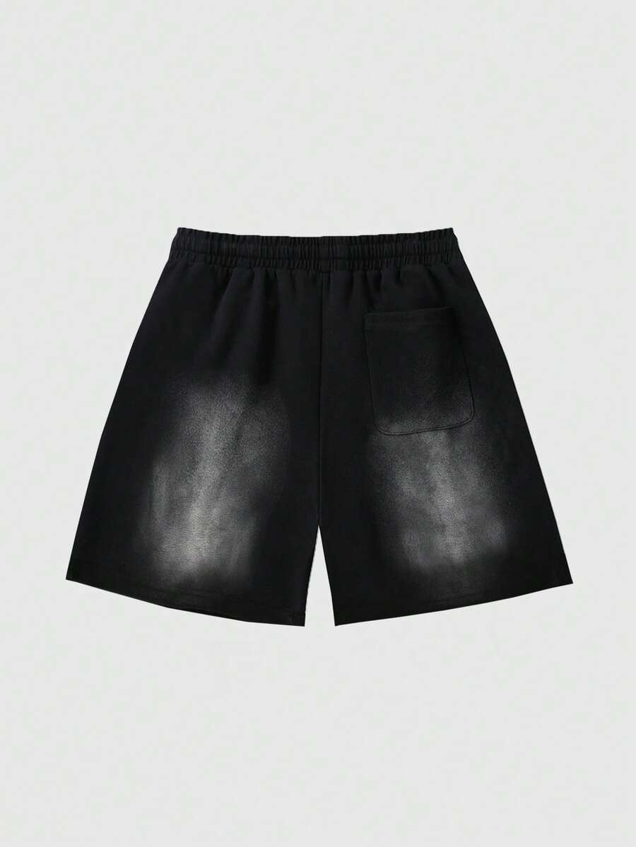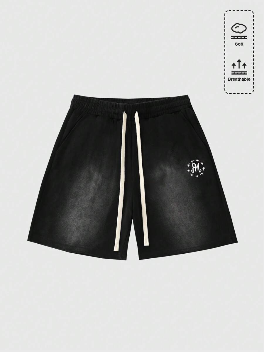 Pantaloncini casual da uomo con stampa e lavaggio effetto vissuto