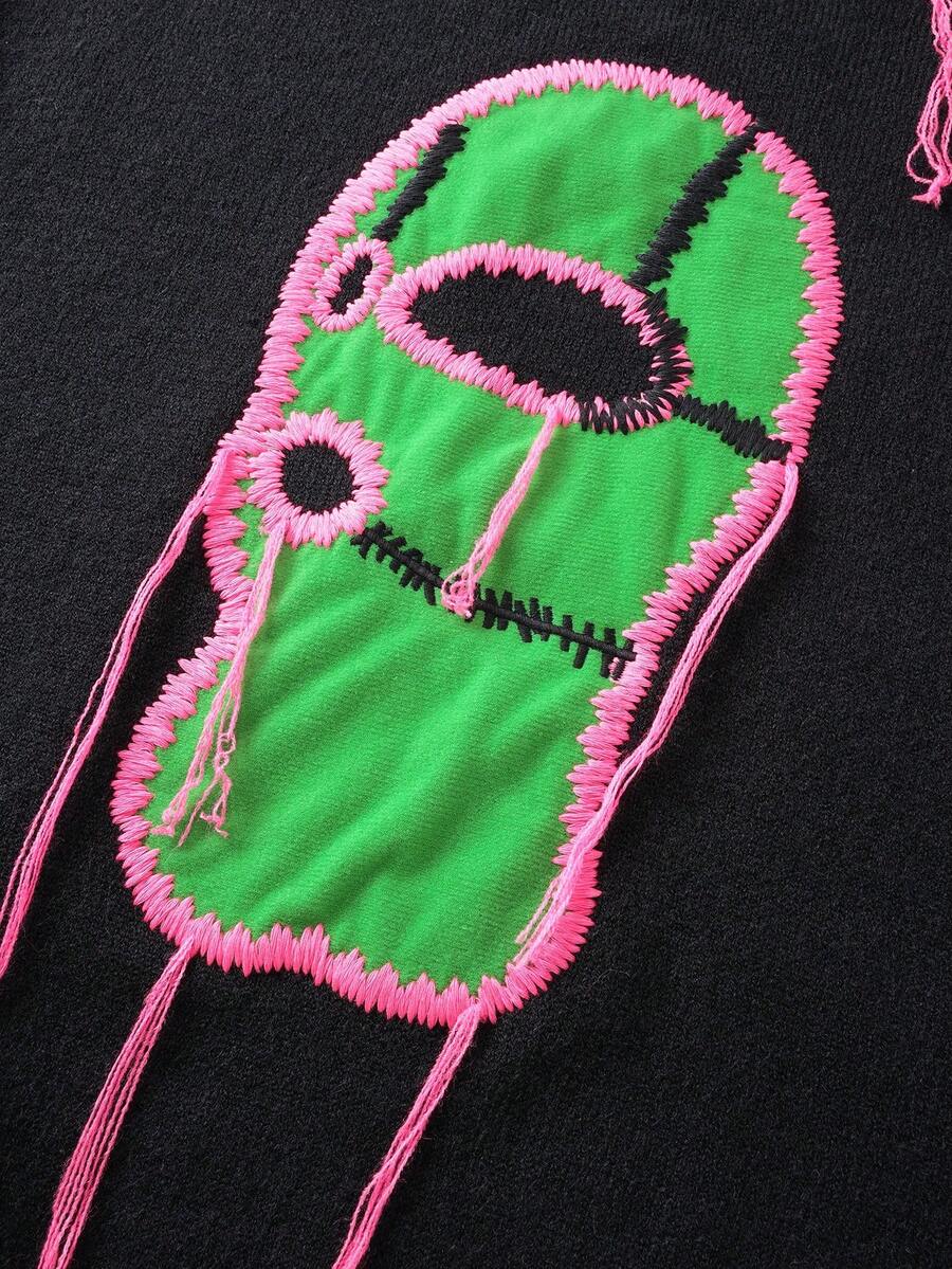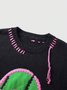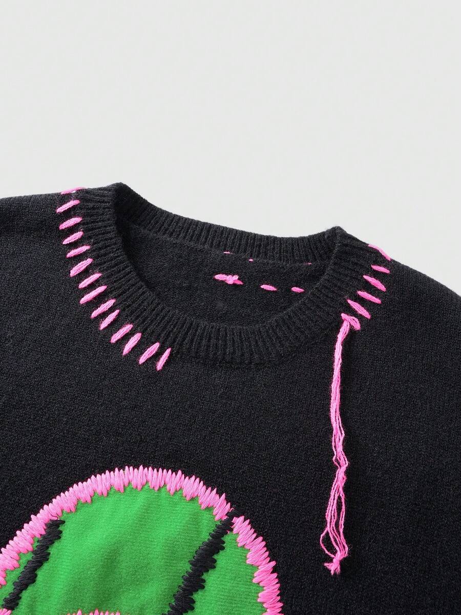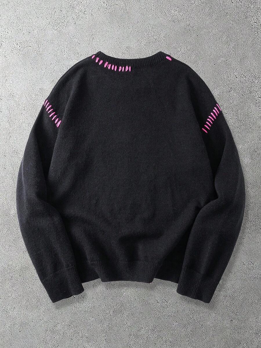 Maglione casual ampio con collo a giro ricamato da uomo, autunno/inverno